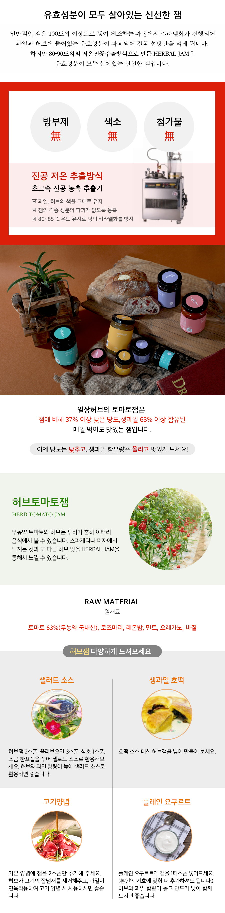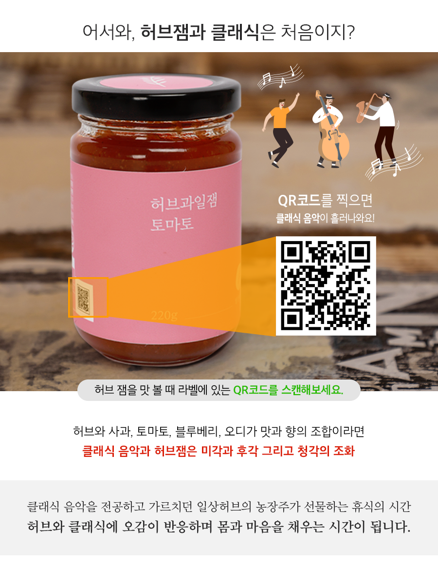 허브사과잼과 허브토마토잼이 기본 구성이며, 허브블루베리잼과 허브오디잼 중 택1 하시면 됩니다.
